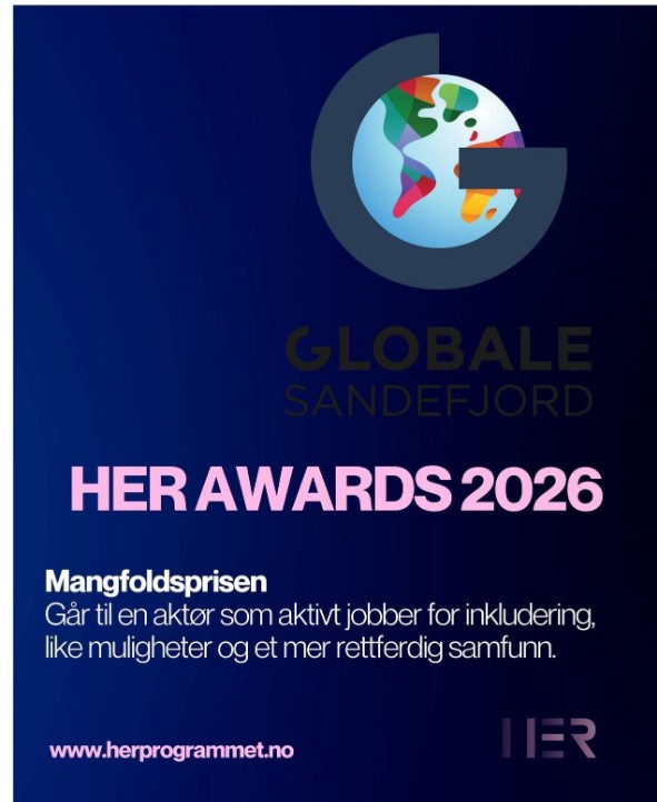 Globale Sandefjord er nominert til HER Awards 2026 i kategorien Mangfoldprisen.